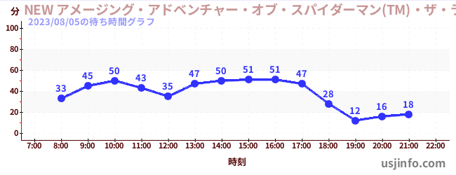 • NEW アメージング・アドベンチャー・オブ・スパイダーマン(TM)・ザ・ライド 4K3D$B$N(B2023年08月05日の待ち時間