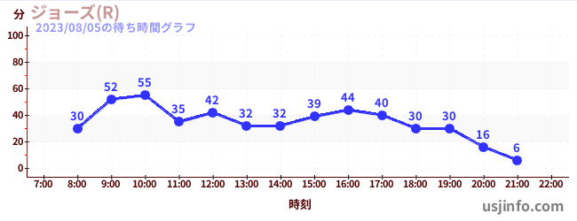 • ジョーズ(R)$B$N(B2023年08月05日の待ち時間