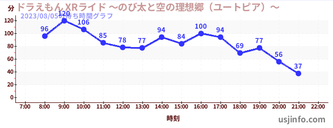 • ドラえもん XRライド ~のび太と空の理想郷(ユートピア)~$B$N(B2023年08月05日の待ち時間