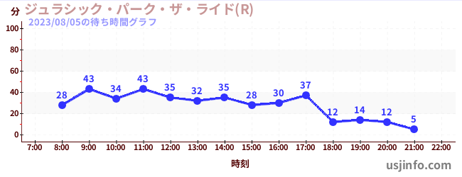 • ジュラシック・パーク・ザ・ライド(R)$B$N(B2023年08月05日の待ち時間