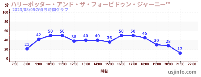 • ハリーポッター・アンド・ザ・フォービドゥン・ジャーニー™$B$N(B2023年08月05日の待ち時間