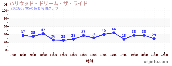 • ハリウッド・ドリーム・ザ・ライド$B$N(B2023年08月05日の待ち時間