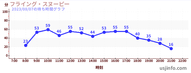 • フライング・スヌーピー$B$N(B2023年08月07日の待ち時間