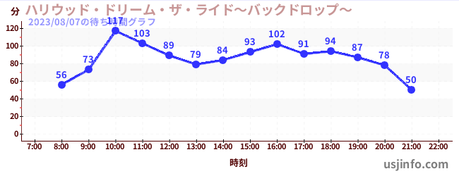 • ハリウッド・ドリーム・ザ・ライド〜バックドロップ〜$B$N(B2023年08月07日の待ち時間
