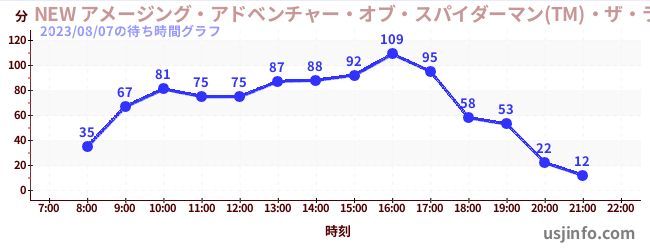 • NEW アメージング・アドベンチャー・オブ・スパイダーマン(TM)・ザ・ライド 4K3D$B$N(B2023年08月07日の待ち時間