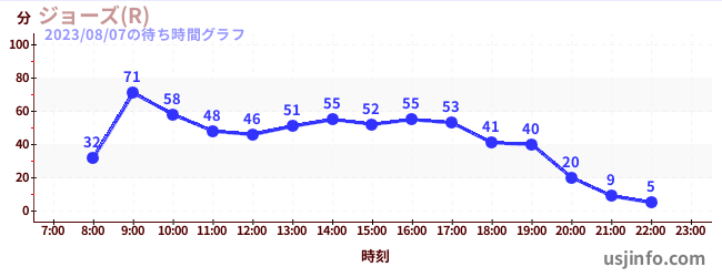 • ジョーズ(R)$B$N(B2023年08月07日の待ち時間