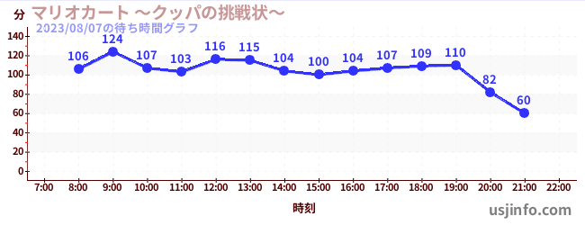 • マリオカート ~クッパの挑戦状~$B$N(B2023年08月07日の待ち時間