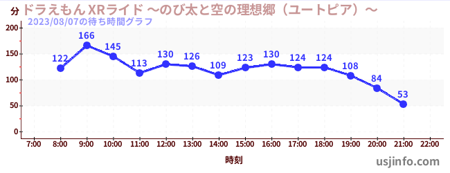 • ドラえもん XRライド ~のび太と空の理想郷(ユートピア)~$B$N(B2023年08月07日の待ち時間