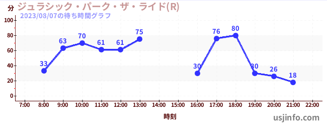 • ジュラシック・パーク・ザ・ライド(R)$B$N(B2023年08月07日の待ち時間