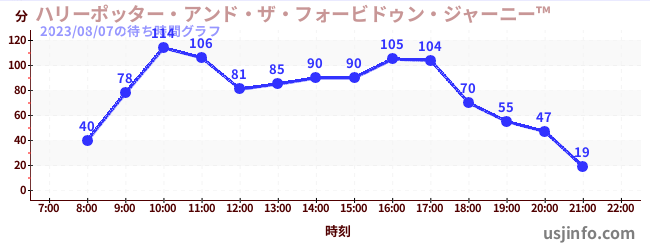 • ハリーポッター・アンド・ザ・フォービドゥン・ジャーニー™$B$N(B2023年08月07日の待ち時間