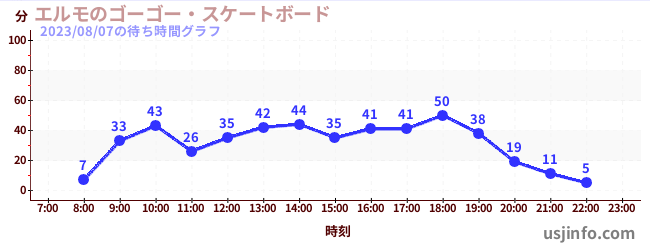 • エルモのゴーゴー・スケートボード$B$N(B2023年08月07日の待ち時間