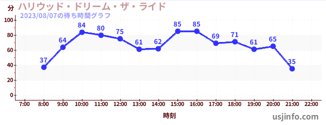 • ハリウッド・ドリーム・ザ・ライド$B$N(B2023年08月07日の待ち時間
