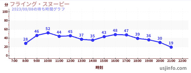 • フライング・スヌーピー$B$N(B2023年08月08日の待ち時間