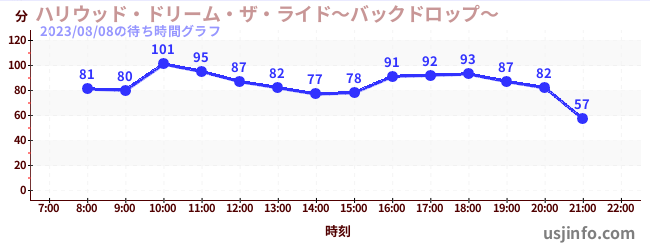 • ハリウッド・ドリーム・ザ・ライド〜バックドロップ〜$B$N(B2023年08月08日の待ち時間