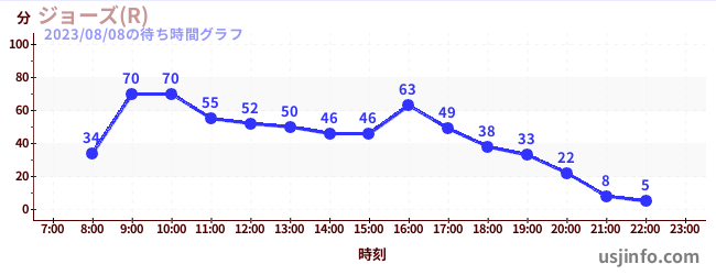 • ジョーズ(R)$B$N(B2023年08月08日の待ち時間