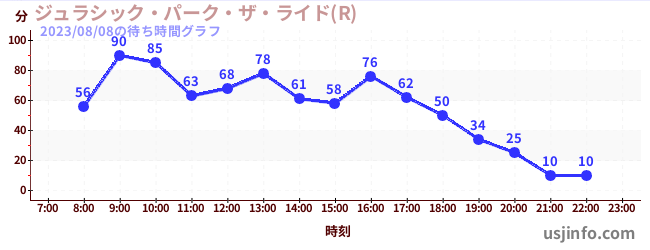 • ジュラシック・パーク・ザ・ライド(R)$B$N(B2023年08月08日の待ち時間