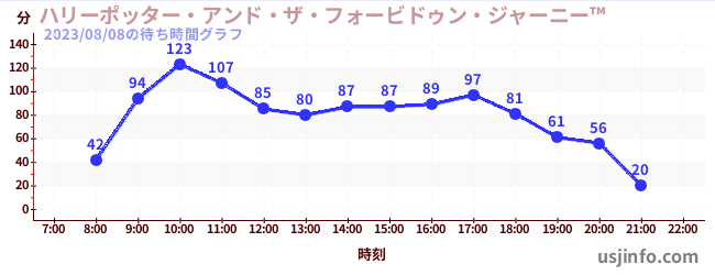 • ハリーポッター・アンド・ザ・フォービドゥン・ジャーニー™$B$N(B2023年08月08日の待ち時間