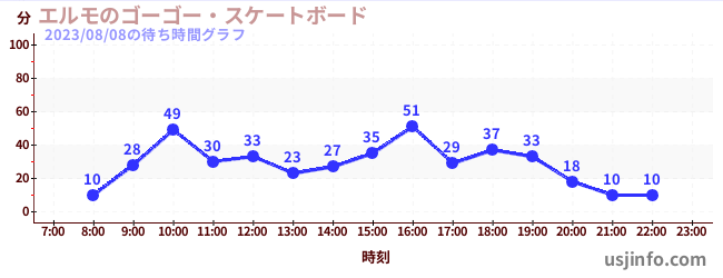 • エルモのゴーゴー・スケートボード$B$N(B2023年08月08日の待ち時間