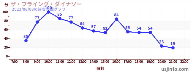 • ザ・フライング・ダイナソー$B$N(B2023年08月08日の待ち時間