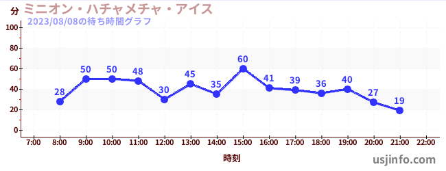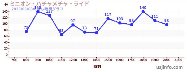 • ミニオン・ハチャメチャ・ライド$B$N(B2023年08月08日の待ち時間
