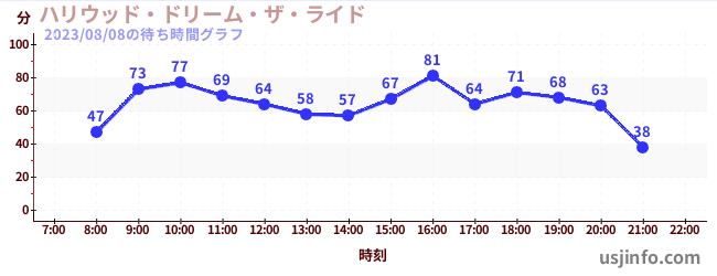 • ハリウッド・ドリーム・ザ・ライド$B$N(B2023年08月08日の待ち時間
