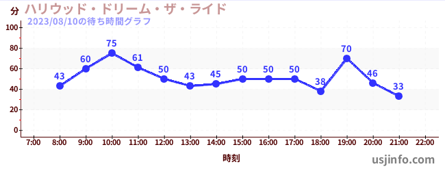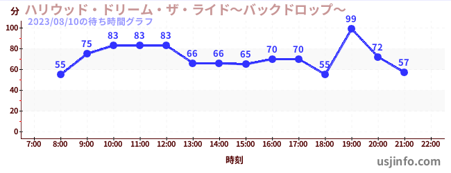 • ハリウッド・ドリーム・ザ・ライド〜バックドロップ〜$B$N(B2023年08月10日の待ち時間