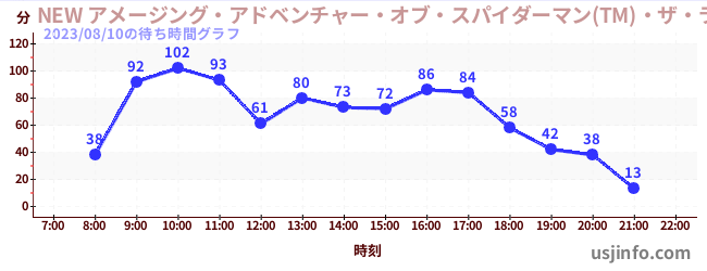 • NEW アメージング・アドベンチャー・オブ・スパイダーマン(TM)・ザ・ライド 4K3D$B$N(B2023年08月10日の待ち時間