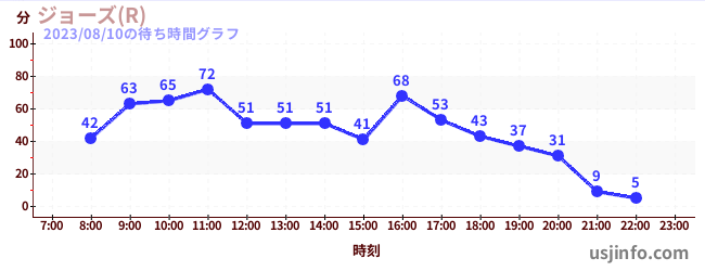 • ジョーズ(R)$B$N(B2023年08月10日の待ち時間