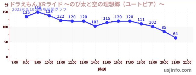 • ドラえもん XRライド ~のび太と空の理想郷(ユートピア)~$B$N(B2023年08月10日の待ち時間