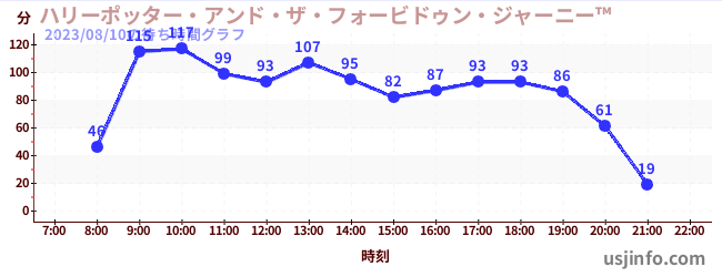 • ハリーポッター・アンド・ザ・フォービドゥン・ジャーニー™$B$N(B2023年08月10日の待ち時間