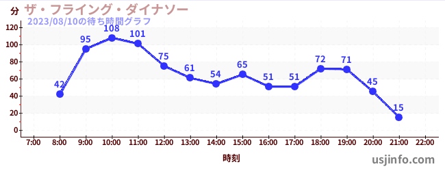 • ザ・フライング・ダイナソー$B$N(B2023年08月10日の待ち時間