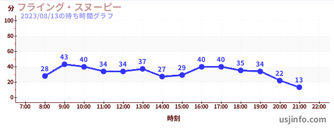 • フライング・スヌーピー$B$N(B2023年08月13日の待ち時間