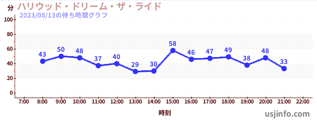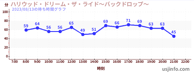 • ハリウッド・ドリーム・ザ・ライド〜バックドロップ〜$B$N(B2023年08月13日の待ち時間
