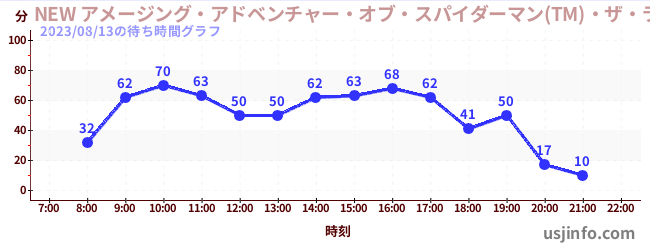 • NEW アメージング・アドベンチャー・オブ・スパイダーマン(TM)・ザ・ライド 4K3D$B$N(B2023年08月13日の待ち時間