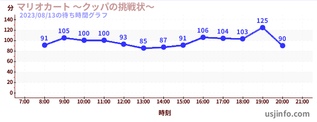 • マリオカート ~クッパの挑戦状~$B$N(B2023年08月13日の待ち時間