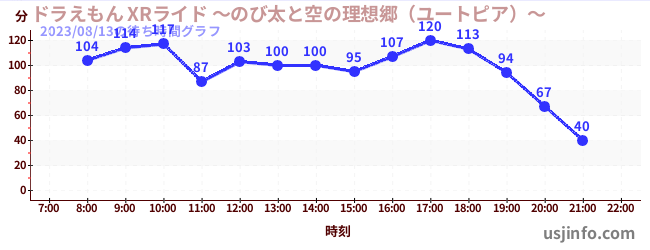 • ドラえもん XRライド ~のび太と空の理想郷(ユートピア)~$B$N(B2023年08月13日の待ち時間