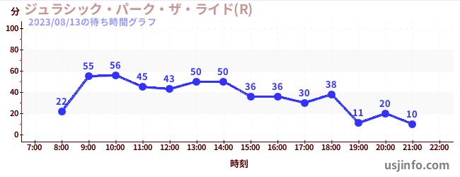 • ジョーズ(R)$B$N(B2023年08月13日の待ち時間