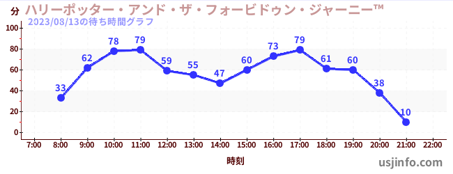 • ハリーポッター・アンド・ザ・フォービドゥン・ジャーニー™$B$N(B2023年08月13日の待ち時間