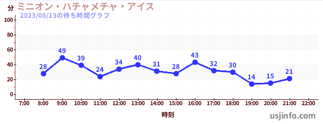 • ミニオン・ハチャメチャ・ライド$B$N(B2023年08月13日の待ち時間