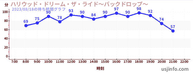 • ハリウッド・ドリーム・ザ・ライド〜バックドロップ〜$B$N(B2023年08月18日の待ち時間