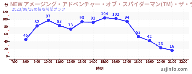 • NEW アメージング・アドベンチャー・オブ・スパイダーマン(TM)・ザ・ライド 4K3D$B$N(B2023年08月18日の待ち時間