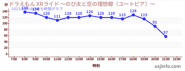 • ドラえもん XRライド ~のび太と空の理想郷(ユートピア)~$B$N(B2023年08月18日の待ち時間