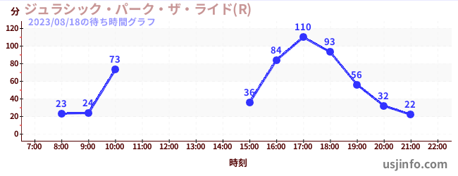 • ジュラシック・パーク・ザ・ライド(R)$B$N(B2023年08月18日の待ち時間