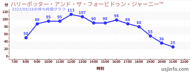 • ハリーポッター・アンド・ザ・フォービドゥン・ジャーニー™$B$N(B2023年08月18日の待ち時間