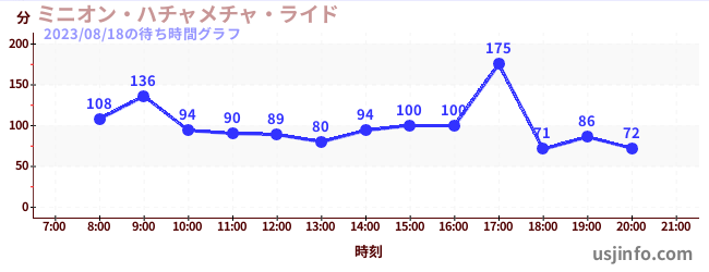 • ミニオン・ハチャメチャ・ライド$B$N(B2023年08月18日の待ち時間