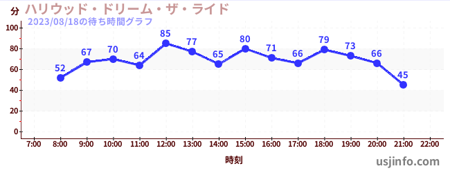 • ハリウッド・ドリーム・ザ・ライド$B$N(B2023年08月18日の待ち時間