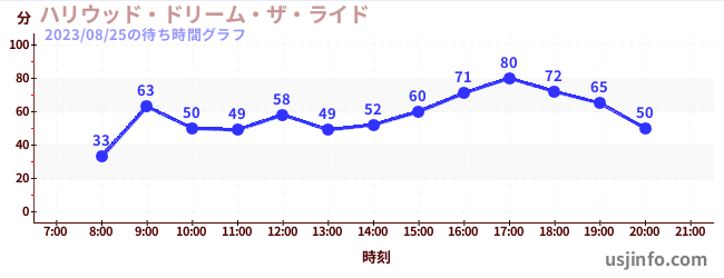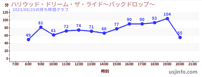 • ハリウッド・ドリーム・ザ・ライド〜バックドロップ〜$B$N(B2023年08月25日の待ち時間
