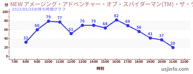 • NEW アメージング・アドベンチャー・オブ・スパイダーマン(TM)・ザ・ライド 4K3D$B$N(B2023年08月25日の待ち時間