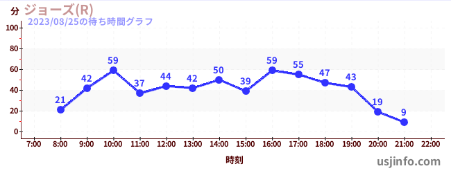 • ジョーズ(R)$B$N(B2023年08月25日の待ち時間