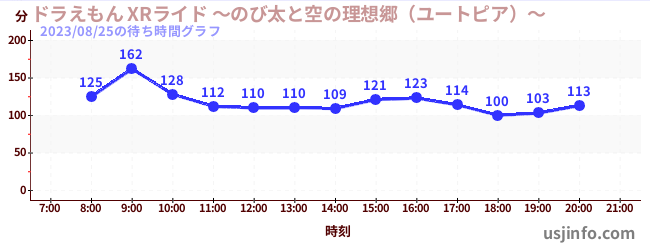 • ドラえもん XRライド ~のび太と空の理想郷(ユートピア)~$B$N(B2023年08月25日の待ち時間